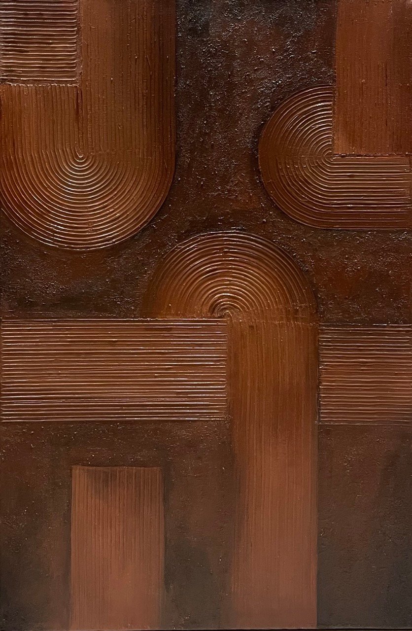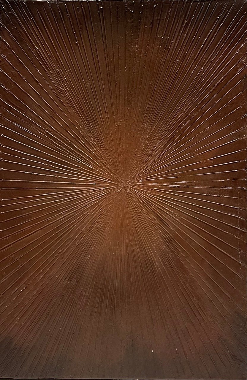 "Ebb and Flow" symbolizes the balance of movement and stillness. The radiating center evokes energy, while the surrounding patterns reflect shifting rhythms.